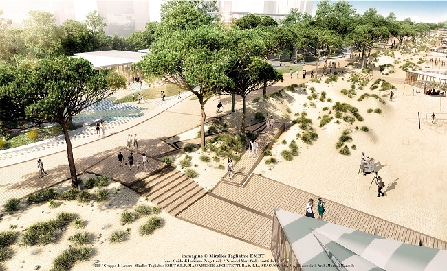 Per il Parco del Mare Sud, l’Amministrazione ha portato avanti una progettazione di alto livello condotta dal raggruppamento di imprese guidato dal gruppo Miralles Tagliabue, che ha avuto il compito di definire le linee guida progettuali degli interventi pubblici e privati, tenendo conto anche degli indirizzi già espressi dal Consiglio Comunale per la riqualificazione del lungomare. Gli importanti finanziamenti statali e regionali ottenuti stanno consentendo, nella cornice di un programma di azioni che si sviluppa su più piani che si integrano e si completano, di dare attuazione alle linee guida e ai progetti, che – a partire dagli interventi già realizzati e in corso sul Piano di Salvaguardia della Balneazione Ottimizzato – si pongono anche obiettivi di resilienza e sostenibilità, oltre che di riposizionamento del prodotto turistico.