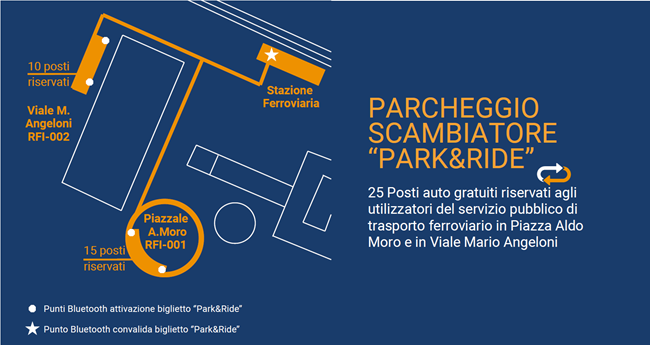 Il servizio prevede la riserva di posti auto dedicati ai pendolari che utilizzano il treno in partenza dalla stazione di Cesena: 15 posti auto in piazza Aldo Moro (codice RFI-001); 10 posti auto lungo viale Mario Angeloni (codice RFI-002). Il Park&Ride è attivo dal lunedì al venerdì, dalle ore 5.00 alle ore 18.30, con gestione, funzionamento e monitoraggio tramite app dedicata.