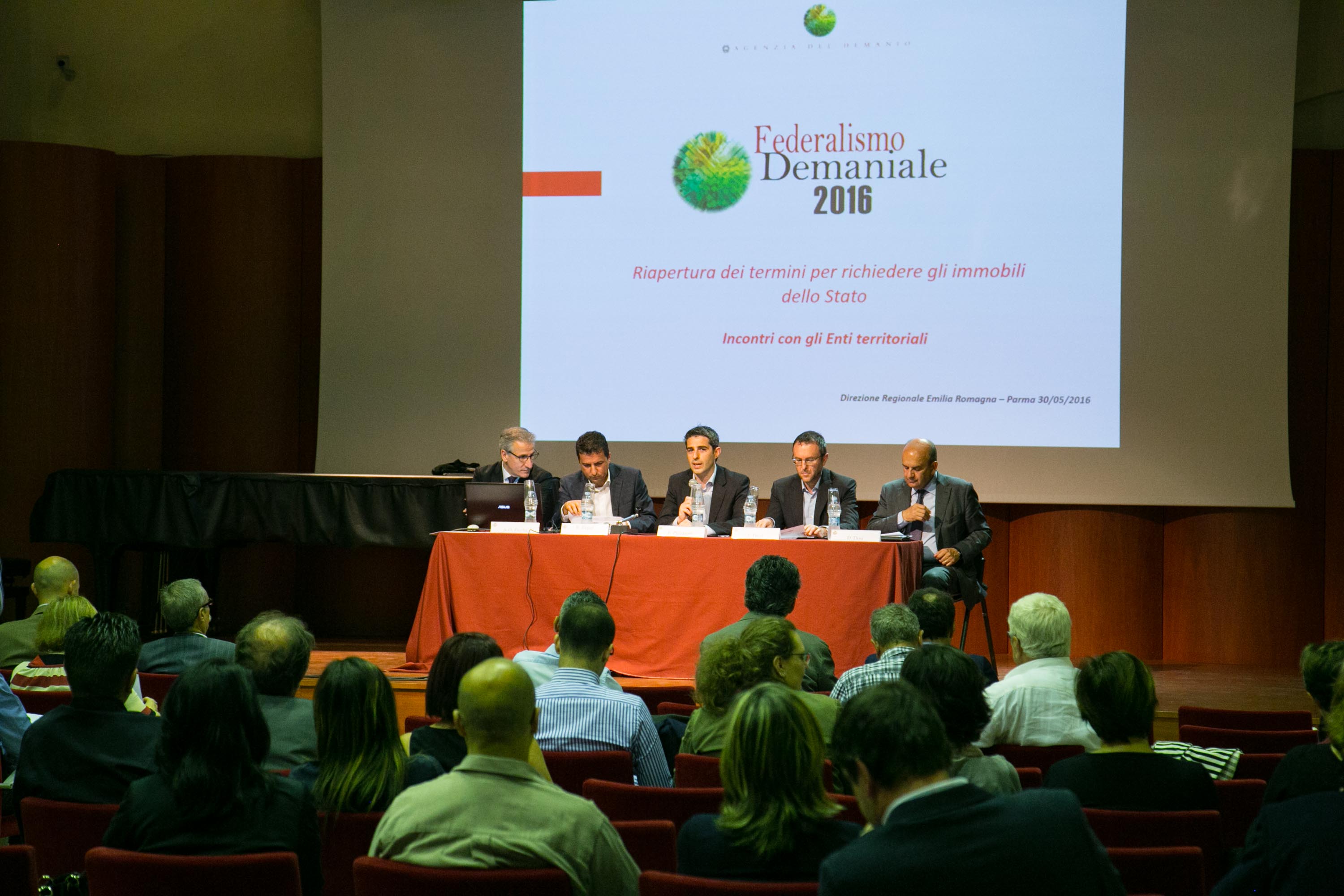 PARMA – Si è parlato di “Federalismo demaniale”, alla Casa della Musica, a seguito della riapertura dei termini per richiedere, da parte degli enti locali, gli immobili dello Stato, per cui c’è tempo fino al 31 dicembre prossimo. Ne hanno parlato Roberto Reggi, direttore dell’Agenzia del Demanio, il sindaco Federico Pizzarotti; il sindaco di Piacenza, Paolo Dosi e Fabio Fecci, sindaco di Noceto, e vice presidente vicario Anci Emilia Romagna. Ha moderato l’incontro Antonio Ottavio Ficchi direttore regionale dell’Agenzia del Demanio.