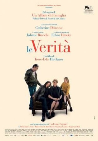 Diva del cinema francese, Fabienne Daugeville pubblica un libro di memorie e per l’occasione riceve la visita della figlia Lumir, sceneggiatrice che vive a New York con il marito Hank e la figlia Charlotte. Nella villa parigina di Fabienne, le due donne si sforzano di entrare in contatto l’una con l’altra e di fare i conti con il passato. Le Verità stupisce per la perfetta sinfonia di ambiguità e allusioni dei suoi dialoghi, giocati su un corto circuito costante di età, ruoli familiari, ricordi e riflessi di sé.