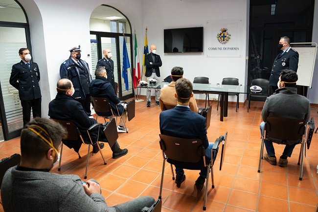 Sono stati accolti in municipio dall’Assessore alla Sicurezza Cristiano Casa; dal Comandante del Corpo di Polizia Locale di Parma, Roberto Riva Cambrino, dal Direttore Generale, Marco Giorgi; con loro anche la Dirigente del Personale Debora Saccani.