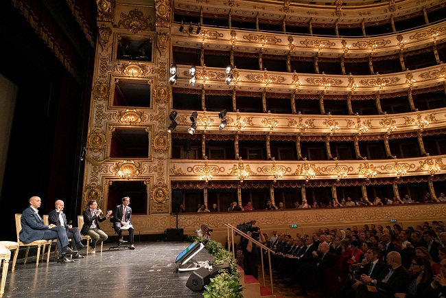 Su il sipario in un Teatro Regio gremito per la presentazione condotta dal giornalista e conduttore televisivo Alessio Viola di Sky TG 24. Subito l’annuncio di una partnership, per tutto il 2020, con il Gruppo Sky per proseguire con gli interventi dei protagonisti di questo viaggio straordinario che Parma sta per compiere.