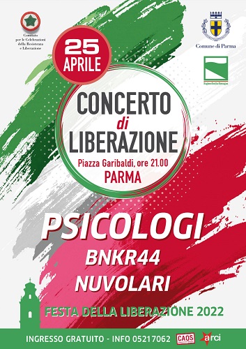 PARMA – Quest’anno sul palco per il momento conclusivo delle celebrazioni del 77° anniversario della Liberazione ci sarà il duo italiano degli PSICOLOGI, accompagnati da altre due proposte artistiche che si stanno facendo strada nel panorama musicale italiano, i BNKR44 e il giovane cantautore NUVOLARI. Lo spettacolo è organizzato dal Comune di Parma in collaborazione con Caos Organizzazione Spettacoli e Arci Parma con il patrocinio della Regione Emilia-Romagna.