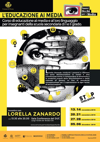 PARMA – Ancora qualche posto disponibile nelle date 20 e 21 novembre 2019 e 5 e 6 dicembre 2019 (dalle 13.30 alle 20.00, Sala Conferenza del DUC, Largo Torello de’Strada) al corso Educazione ai media e alla cittadinanza tenuto da Lorella Zanardo e promosso dall’Assessorato Pari opportunità del Comune di Parma.