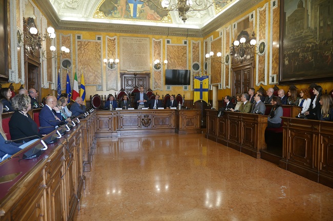 Questa mattina la presentazione ufficiale di Giocampus Scuola 2019/2020 nella Sala Consiliare del Municipio di Parma, alla presenza del Vice Sindaco di Parma con delega allo Sport Marco Bosi, del magnifico Rettore dell’Università di Parma Paolo Andrei, del Presidente del CUS Parma Michele Ventura, di Andrea Belli relazioni esterne Barilla e di Elio Volta, delegato del Provveditore agli studi e coordinatore del progetto.
