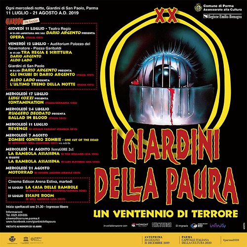 Con una formula originale, che mescola senza pregiudizi pellicole d’autore e splatter, film del presente e capolavori del passato, I Giardini della Paura quest’anno giungono a un punto di svolta e si proiettano verso un futuro ricco di sorprese e novità all’interno del progetto globale di Parma Capitale della Cultura 2020.