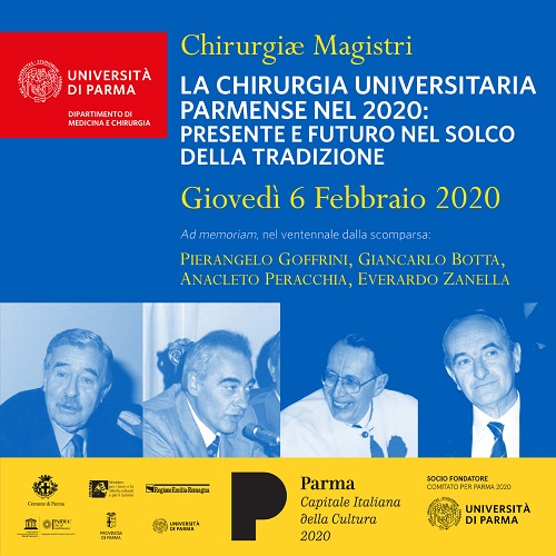 Sarà un’occasione per riflettere sulla chirurgia e sulla grande tradizione della scuola di Parma, ricordando quattro grandi maestri come Pierangelo Goffrini, Giancarlo Botta, Anacleto Peracchia, Everardo Zanella