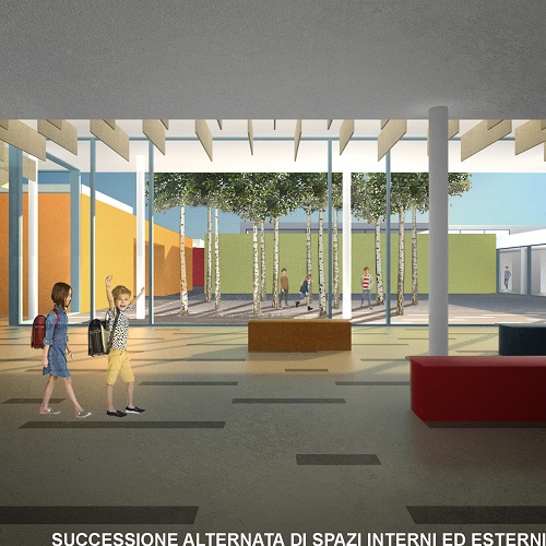 La scuola sarà inserita in un’ampia area verde i cui spazi saranno in parte di pubblico utilizzo. Nell’area verrà realizzo un vero e proprio bosco urbano con giochi bimbi ed un’ampia piazza situata tra via Zarotto e vi Gronchi, via d’accesso alla nuova scuola.