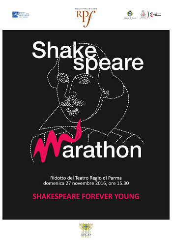 PARMA – In occasione dei quattrocento anni dalla scomparsa di William Shakespeare ReggioParmaFestival presenta Shakespeare Marathon: le città di Parma e Reggio Emilia celebrano il Bardo con un programma che attraversa teatro, opera, musica, poesia, danza e cinema, realizzato da Teatro Regio di Parma, I Teatri di Reggio Emilia, Teatro Due di Parma, dal 16 novembre al 22 dicembre 2016, e con una vera e propria maratona dal pomeriggio a tarda notte sabato 19 novembre (programmi dettagliati: www.reggioparmafestival.it).