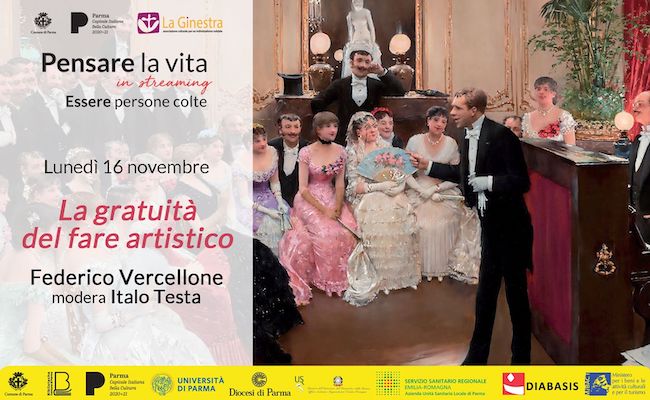 PARMA – Oggi, 16 novembre 2020,alle ore 18.00 si terrà un nuovo incontro di “Pensare la vita”. Il relatore sarà Federico Vercellone che si occuperà de “La gratuità del fare artistico” nell’appuntamento, moderato da Italo Testa, trasmesso su youtube, www.youtube.com/c/PensareLaVita, e facebook, www.facebook.com/PensareLaVita.