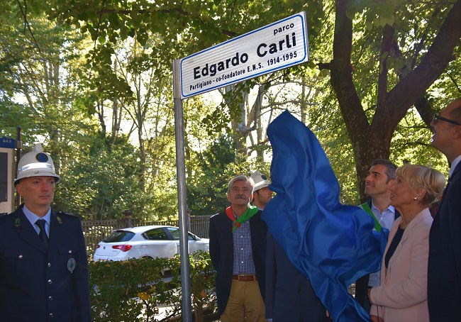L’intitolazione del parco pubblico è avvenuta alla presenza delle massime autorità civili e istituzionali, dei rappresentanti nazionali e locali dell’ENS, tra cui il Presidente Giuseppe Petrucci, di una rappresentanza dell’ANPI (l’Associazione Nazionale Partigiani d’Italia) di Parma e della figlia di Edgardo, Fulvia Carli che orgogliosa e commossa ha tirato insieme al Sindaco Pizzarotti il drappo che ha scoperto la targa con il nome del padre.