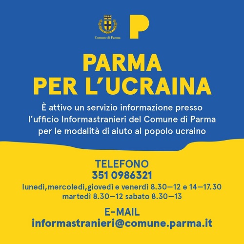 “L’Ufficio Informastranieri del Comune di Parma si fa punto di raccolta e informazione anche per questa necessità emersa dopo i primi momenti di accoglienza dei profughi ucraini.” dice Laura Rossi Assessora al Welfare del Comune di Parma ” La disponibilità volontaria delle professionalità indicate va quindi presentata in questa sede. Siamo impegnati a rispondere ai bisogni dei profughi accolti dalla città di Parma e a coordinare la straordinaria risposta di solidarietà che è stata manifestata dai nostri cittadini. Per farlo nel modo corretto informeremo di volta in volta sui bisogni che emergeranno per attivare le donazioni da parte della cittadinanza.”