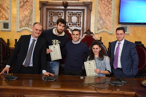 PARMA – E’ stato un insegnamento prima di tutto di vita per i 70 alunni di tre diverse scuole – Fra Salimbene, Liceo Sportivo Bertolucci e scuola per l’Europa – che hanno preso parte, ieri mattina, nella sala del consiglio comunale, alla cerimonia di consegna di due pergamene da parte del sindaco, Federico Pizzarotti, agli atleti Luca Vettori e Giulia Ghiretti. Si tratta di un riconoscimento a nome di tutta la città che è stato assegnato a Luca Vettori, nazionale pallavolo maschile, medaglia d’argento alle olimpiadi di Rio 2016, per il prestigioso risultato ottenuto. Il Comune di Parma ha ringraziato anche Giulia Ghiretti, medaglia d’argento nei 100 metri rana, medaglia di bronzo nei 50 metri farfalla, paralimpiadi di Rio 2016, per i prestigiosi risultati ottenuti.