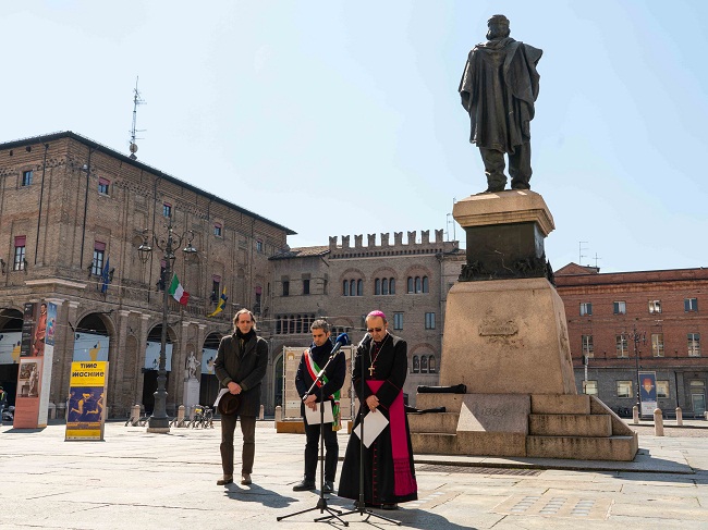 PARMA – Toccante cerimonia, questa mattina, in piazza Garibaldi, dove il Vescovo, monsignor Enrico Solmi, ha rinnovato l’affidamento della città alla Vergine Maria e lo ha fatto rivolgendosi alla statua che raffigura la Vergine Incoronata, opera dello sculture Jean Baptiste Boudard, che si trova nella facciata del palazzo stesso.