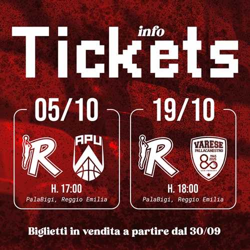 Le informazioni relative a prezzi e settori sono disponibili su https://pallacanestroreggiana.vivaticket.it/