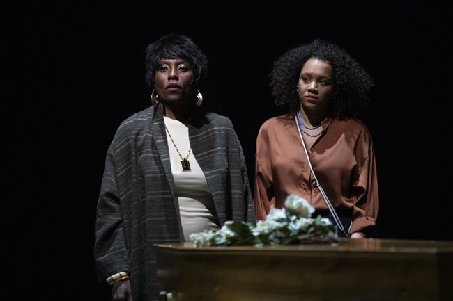 Ad animare la scena, è un cast di attrici e attori di diverse provenienze e generazioni «che si confrontano con la verticalità dei loro corpi e il calore del loro respiro di fronte alla scomparsa, al mistero della morte. All’esplosione della perdita. Riuniti nel dolore, gravitano come satelliti intorno a una bara cosparsa di fiori. […] In questo scenario di dolore e contemplazione, la parola mantiene in vita e fa convivere, nel bene e nel male, i vivi».