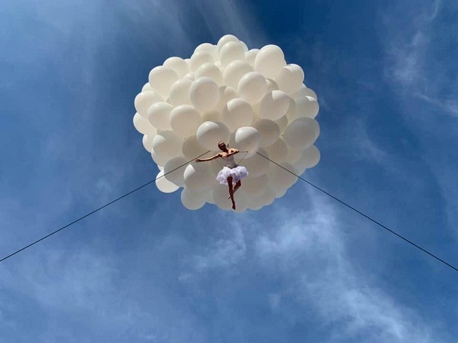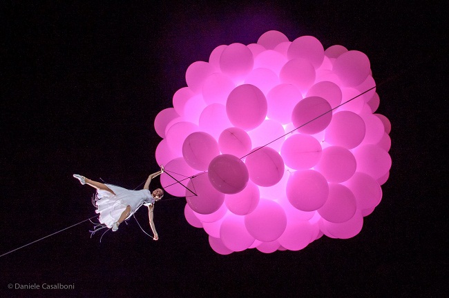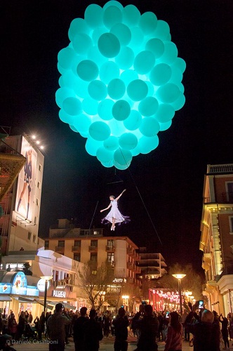 Tre le repliche della performance, due nel pomeriggio e l’ultima in notturna, ancora più suggestiva con le trecento sfere che cambiavano colore.
