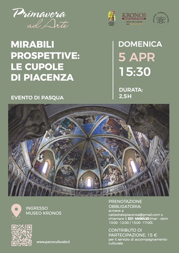 PIACENZA – In occasione delle festività pasquali, il Museo Kronos propone domenica 5 aprile alle ore 15:30 l’evento speciale “Mirabili Prospettive: le Cupole”, un’esperienza di visita dedicata alla scoperta delle cupole custodite nella Cattedrale di Piacenza e nella Basilica di Santa Maria di Campagna.