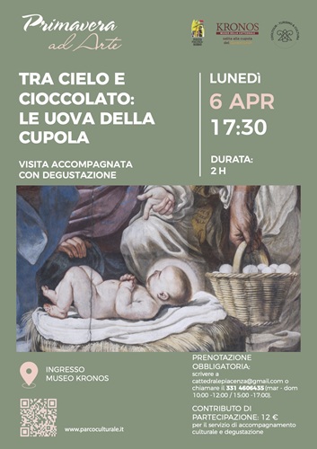 PIACENZA – In occasione di Lunedì dell’Angelo, il Museo Kronos propone lunedì 6 aprile alle ore 17:30 la visita guidata con degustazione “Tra cielo e cioccolato: le uova della cupola”.