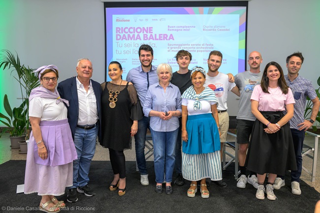 L’assessore Mattia Guidi ha aperto la conferenza stampa di presentazione di “Dama Balera” che si è tenuta questa mattina al Palazzo del Turismo dicendo di essere lieto e soprattutto onorato per avere a Riccione un evento che rappresenta “un racconto che vola sospeso nel tempo e che unisce diverse generazioni” con la “rockstar del liscio, Roberta Cappelletti” e il gruppo formato da giovani riccionesi, i Vulva de Leyva, che arrivano da un altro ambiente musicale provando tanta ammirazione per Casadei, a interpretare la musica della tradizione. “Con Dama Balera si festeggiano tre anniversari”, ha aggiunto Guidi, “i 70 anni di “Romagna mia”, i 30 anni di amicizia tra Roberta Cappelletti e Riccarda Casadei, i 25 anni di Costa Hotels che da sempre promuove la cultura della tradizione locale”. Riccarda Casadei ha poi ricordato la figura del babbo, “innamorato della musica, legato a Riccione tanto da dedicarle la canzone “Riccione by night”, una persona curiosa e avanti con i tempi che amava sperimentare e che per primo aggiunse nel 1952 una cantante donna nella sua orchestra. Il suo talento è stato riconosciuto anche dal Maestro Ennio Morricone che definì “Romagna mia” un piccolo gioiello”. “Un grande artista pop e sperimentatore”, ha poi aggiunto Guidi, “proprio come piace a Riccione”.