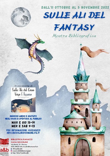 FERRARA – In attesa di ospitare le premiazioni del concorso letterario “Sulle ali del corvo verso l’azzurro” (il 28 ottobre 2022 alle 16,30), la biblioteca comunale per ragazzi di Casa Niccolini (via Romiti 13, Ferrara) propone, dall’11 ottobre al 5 novembre prossimi, un’esposizione bibliografica tutta dedicata al genere fantasy.