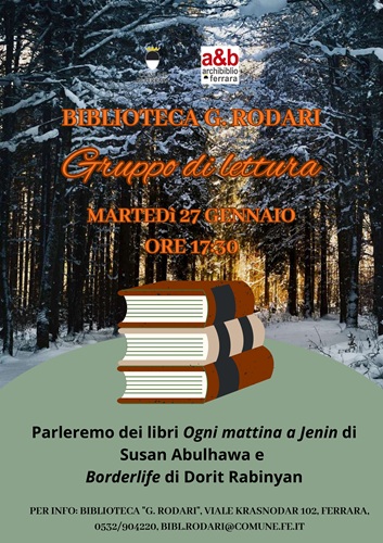 FERRARA – In occasione del Giorno della Memoria il gruppo di lettura della biblioteca comunale Rodari propone una riflessione sulla storia presente e passata. Sarà infatti dedicato ai libri “Ogni mattina a Jenin” di Susan Abulhawa e “Borderlife” di Dorit Rabinyan il nuovo incontro del gruppo in calendario per martedì 27 gennaio 2026 alle 17:30 nella sede di viale Krasnodar 102, a Ferrara.