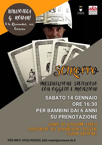 FERRARA – Sarà una ‘presentazione-spettacolo con oggetti e proiezioni’, quella con cui sabato 14 gennaio 2023 alle 16.30 Giuseppe Viroli illustrerà il suo libro ‘Sciroppo’ alla biblioteca comunale Rodari di Ferrara (viale Krasnodar 102).
