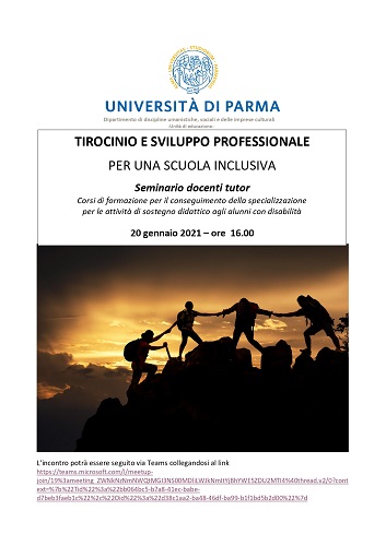 PARMA – Mercoledì 20 gennaio, con inizio alle 16, si terrà il seminario pubblico on line “Per una Scuola inclusiva”, nell’ambito dei Corsi di formazione per il Conseguimento della specializzazione per le attività di sostegno didattico agli alunni con disabilità, organizzati dall’Unità di Educazione del Dipartimento di Discipline Umanistiche, Sociali e delle Imprese Culturali-DUSIC dell’Università di Parma.