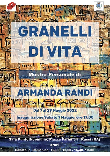 RUSSI (RA) – Proseguono nel mese di maggio le mostre degli artisti dell’Associazione Culturale Artej di Russi con l’esposizione di Armanda Randi dal titolo “Granelli di Vita”.