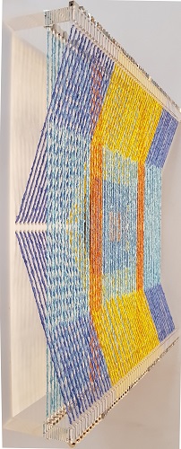 Approdato dopo vari anni di ricerca ad una nuova fase di sperimentazione artistica, Arturo Baldan avvia nel 2012 un nuovo modo di concepire e realizzare le sue creazioni dal titolo “philos”. Un termine che si riferisce a quello che gli antichi greci usavano per designare il cosiddetto “amore fraterno”, una delle tre classificazioni amorose, insieme ad Eros ed Agape, da loro teorizzato. Si tratta di originali installazioni costituite da un telaio in alluminio su cui dei filati, posti in tensione, realizzano un seriale e pluricromatico disegno geometrico che altera la sua forma a seconda della posizione da cui lo si osserva. Un procedimento complesso si cela dietro la creazione di questi lavori che prevede dapprima la progettazione attraverso un bozzetto e poi la realizzazione artigianale di tutti i suoi elementi, dai fili in tessuto, colorati a mano, fino all’assemblaggio del telaio in alluminio e della struttura in plexiglas. L’artista attribuisce ad ogni elemento della sua composizione una delle tre istanze freudiane della personalità. I fili rappresentano l’Es, ossia il livello inconscio delle pulsioni e degli istinti, mentre il telaio che regge e pone in tensione i fili simboleggia il Super Io che ha il compito di controllare e dominare gli istinti attraverso la coscienza e le norme sociali. La mediazione tra queste due forze va a costituire l’opera nella sua interezza che simboleggia così l’Io. Ecco che ognuna di queste opere a seconda della loro conformazione e del rapporto tra le sue componenti costitutive va a riprodurre una specifica personalità che il visitatore potrà liberamente e psicoanaliticamente interpretare secondo la propria emotività.