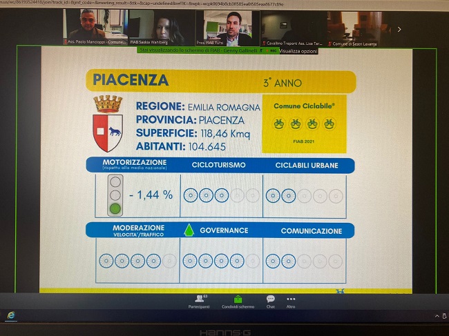 PIACENZA – Un punteggio di quattro su cinque, con particolare riconoscimento per le positive politiche legate al PUMS – come l’incremento delle Zone 30 – e per il bonus mobilità (Bike to work): con questo giudizio complessivo il Comune di Piacenza continua il suo percorso di crescita per lo sviluppo della mobilità sostenibile, certificato nella quarta edizione di FIAB-ComuniCiclabili, il riconoscimento della Federazione Italiana Ambiente e Bicicletta, che valuta il grado di ciclabilità dei comuni italiani.
