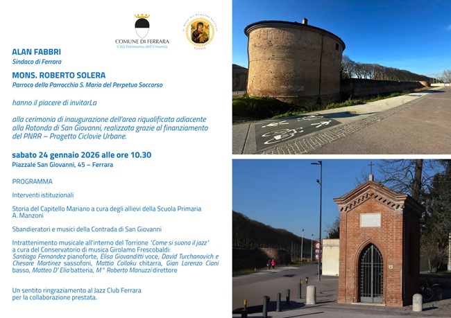 FERRARA – Sabato 24 gennaio 2026 alle 10:30 – con ritrovo nell’area a fianco del Torrione di piazzale San Giovanni a Ferrara – avrà luogo un incontro inaugurale a conclusione dell’intervento di riqualificazione dell’area adiacente il Torrione di San Giovanni, compresa tra la rotatoria e il campo sportivo, dove sono stati realizzati una nuova pavimentazione e un nuovo tratto di pista ciclabile.