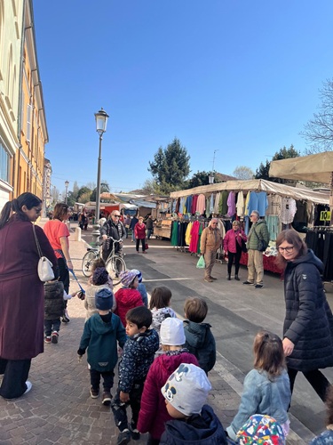 Negozi, strade, piazze e residenti diventano parte attiva del percorso formativo, realizzando un vero e proprio ambiente educativo all’aperto, dove i bambini possono vivere esperienze sensoriali, motorie e sociali in contesti reali: camminare lungo le strade, osservare le vetrine, incontrare persone e scoprire luoghi significativi favorisce l’apprendimento attraverso la quotidianità, stimolando curiosità e autonomia.