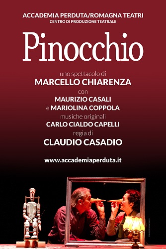 “Pinocchio” di Marcello Chiarenza, con la regia di Claudio Casadio, interpretato da Maurizio Casali e Mariolina Coppola, sarà in scena al Teatro Filodrammatici domenica 5 dicembre alle ore 16.30 per “A teatro con mamma e papà”, con replica lunedì 6 dicembre alle ore 10 per la Rassegna di teatro scuola “Salt’in Banco”, nell’ambito delle Stagioni di teatro ragazzi 2021/2022 curate da Simona Rossi e organizzate da Teatro Gioco Vita, direzione artistica di Diego Maj, con Fondazione Teatri di Piacenza, la collaborazione dell’Associazione Amici del Teatro Gioco Vita e il sostegno della Fondazione di Piacenza e Vigevano.