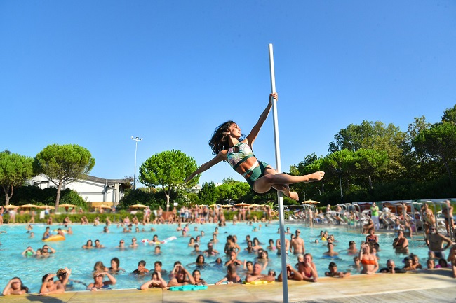 Uno spettacolo affascinante e suggestivo da godersi immersi nell’immensa piscina di Perle d’Acqua Park. La Pole Dance è una disciplina sportiva a tutti gli effetti che riesce a far lavorare ogni muscolo del corpo. Si tratta di un esercizio intenso e completo, che unisce ginnastica acrobatica e danza al ritmo di musica per giungere a creare emozionanti coreografie. Con il tempo e l’impegno, aiuta ad acquisire maggiore flessibilità, forza, coordinazione, resistenza e agilità. Uno spettacolo ancora più coinvolgente se messo in scena a Perle d’Acqua Park, che ha riscosso un successo travolgente nella prima edizione della scorsa estate, un appuntamento da segnare in agenda e da non perdere!