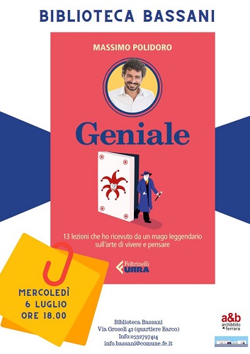 FERRARA – Massimo Polidoro, l”indagatore dell’insolito’ arriva alla biblioteca comunale Bassani per presentare il suo ultimo libro dal titolo ‘Geniale’, che racconta del suo incontro con James Randi, il celebre illusionista, oppositore delle pseudoscienze. L’appuntamento è per mercoledì 6 luglio 2022 alle 18 nella sala auditorium (via Grosoli 42, zona Barco, Ferrara).