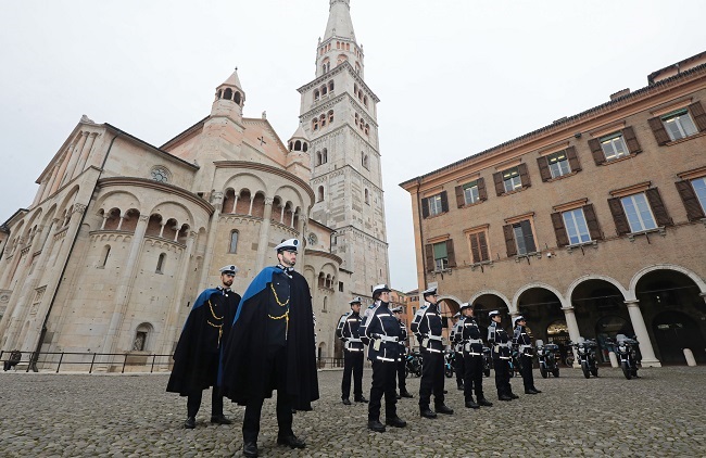 Sicurezza stradale e sicurezza urbana sono i due principali fronti, non gli unici, su cui è impegnata la Polizia municipale di Modena come hanno ricordato, in occasione della festa di S. Sebastiano, il sindaco Gian Carlo Muzzarelli nella sala consiliare del Municipio, e la comandante Valeria Meloncelli che ha illustrato l’attività svolta dal Corpo durante l’anno appena trascorso. L’incontro è avvenuto dopo la celebrazione della S. Messa in Duomo e la deposizione di una corona d’alloro al Sacrario della Ghirlandina; presente il prefetto Maria Patrizia Paba che ha portato il saluto istituzionale e il suo augurio a tutte le Polizie locali.