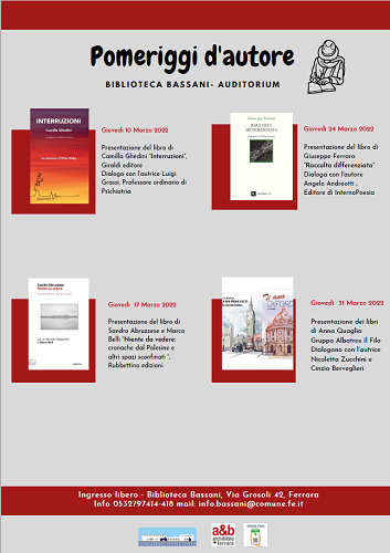 Il programma completo degli appuntamenti culturali della biblioteca comunale Bassani di Ferrara alla pagina: http://archibiblio.comune.fe.it