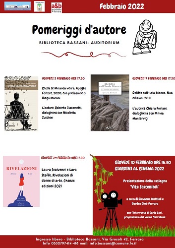 Il programma completo degli appuntamenti culturali della biblioteca comunale Bassani di Ferrara alla pagina: http://archibiblio.comune.fe.it