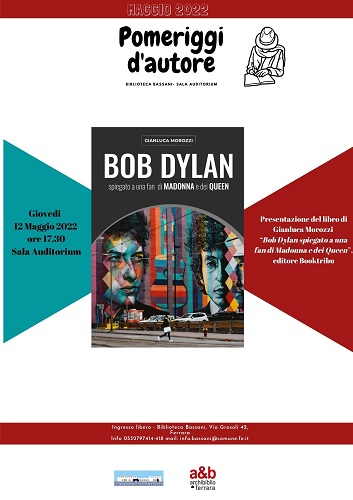 FERRARA – Si sviluppano tra rivelazioni, incontri e inaspettate scoperte le vicende dei protagonisti del libro di Gianluca Morozzi “Bob Dylan spiegato a una fan di Madonna e dei Queen” che giovedì 12 maggio 2022 alle 17,30 sarà presentato nella sala auditorium della biblioteca comunale Giorgio Bassani di via Grosoli 42 a Ferrara (zona Barco).