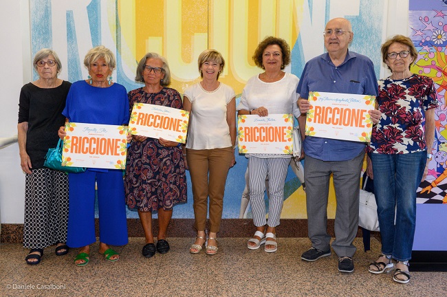 RICCIONE (RN) – Stessa spiaggia, stesso mare. Da 50 anni, Daniela di Verona, Roberta di Vignola, Rossella, Piero e Margherita di Bologna hanno scelto di trascorrere le vacanze a Riccione, precisamente alla Spiaggia del Sole (86-87). E per questo ieri hanno ricevuto dalle mani della sindaca Daniela Angelini il riconoscimento di “ambasciatori” di Riccione.