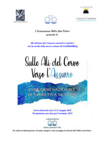 FERRARA – Sarà la biblioteca comunale Casa Niccolini (in via Romiti 13, a Ferrara) a ospitare, anche quest’anno le premiazioni del concorso fantasy “Sulle ali del corvo verso l’azzurro“. Venerdì 24 novembre 2023 alle 16.30 saranno svelati i nomi dei vincitori del concorso fantasy , indetto dall’Associazione di promozione sociale Baffo John Potter, in collaborazione con il Gruppo Scrittori Ferraresi A.P.S e con il patrocinio del Comune di Ferrara, in memoria di Raffaele Bonazza, giovane di profonda versatilità e di multiforme ingegno.