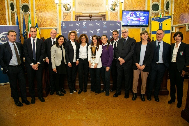 PARMA, 18 aprile 2019 – In occasione dell’annuncio delle squadre finaliste della Coppa Italia Femminile, giovedì 18 aprile a Parma presso la Sala del Comune si è tenuta la presentazione ufficiale alla stampa della Quarta edizione della Danone Nations Cup 2019. Un evento in costante evoluzione e crescita, soprattutto in termini di partecipazione da parte delle società del territorio che rappresenta una delle più importanti attività nell’ambito dello sviluppo del movimento femminile italiano. All’incontro hanno preso parte Marco Brunelli, Direttore Generale FIGC e Vito Tisci, Presidente del Settore Giovanile e Scolastico, Milena Bertolini, CT della nazionale femminile italiana, il Sindaco di Parma Federico Pizzarotti e Salvatore Castiglione, Corporate Affairs Director Danone.