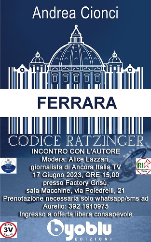 Scopritore della sede impedita e del codice comunicativo di Sua Santità Benedetto XVI costretto in “sede impedita”, alla fine di maggio 2022 Andrea Cionci ha pubblicato il Libro-inchiesta “Codice Ratzinger” che riassume il lavoro di due anni di indagini e oltre 500 articoli, lavoro avallato da insigni studiosi italiani e stranieri.