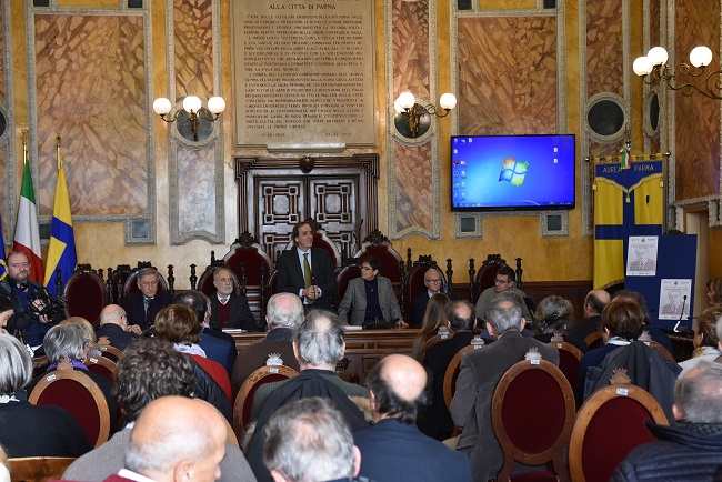 PARMA – Secondo appuntamento per Mario Bocchi nella Sala del Consiglio Comunale di Parma. A distanza di qualche mese dall’apposizione del suo ritratto della Sala Grande del Municipio di Parma insieme a tutti i primi cittadini è stato presentato in mattinata il volume che raccoglie le vicende del primo Sindaco di Parma dal 1945 al ’46 e frutto di un appassionato lavoro di ricerca dello studioso di Giuliano Masola che include rare immagini ritrovate dal nipote Andrea Saccani: “Mario Bocchi primo Sindaco di Parma”.