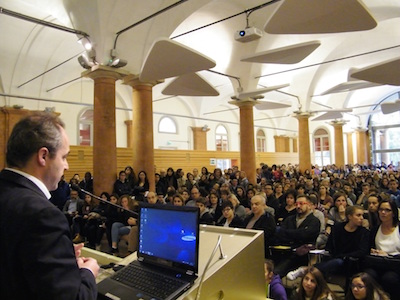 “E’ giusto che oggi vi troviate qui, in un luogo del sapere, per compiere una scelta sul vostro sapere: una scelta davvero importante, che se fatta bene e in modo ragionato rappresenterà per voi un investimento fondamentale per ciò che potrete fare di positivo nel vostro cammino”, ha detto ai ragazzi il presidente della Provincia di Reggio Emilia, Giammaria Manghi, aprendo la presentazione collegiale delle scuole e sottolineando la “centralità della scuola nell’impegno che quotidianamente, pur tra tante difficoltà, la Provincia di Reggio Emilia intende continuare a svolgere”.