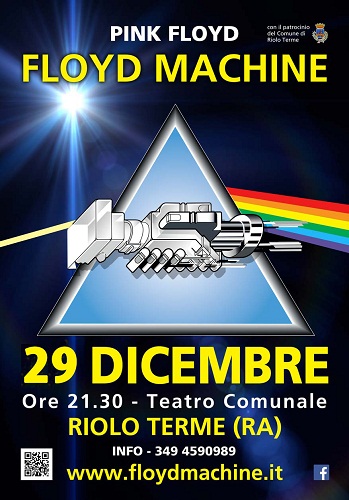RAVENNA – Ultimo show FLOYD MACHINE 2018 sabato 29 dicembre ore 21.45 a Riolo Terme, spettacolo organizzato in chiusura di un anno indimenticabile all´interno dell´accogliente e storico Teatro Comunale, situato nel centro storico della cittadina, a pochi passi dalla Rocca e dalla zona termale.