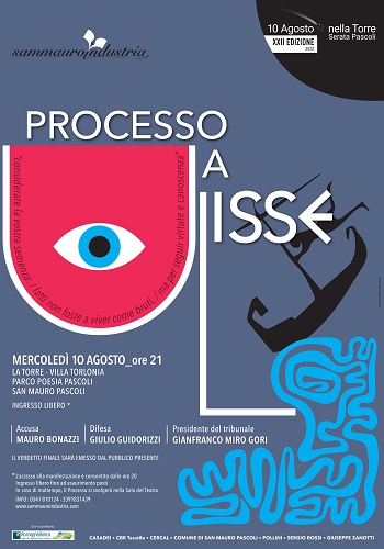 A guidare l’accusa sarà Mauro Bonazzi, professore ordinario di storia della filosofia antica e medievale a Utrecht (Paesi Bassi), in difesa di Ulisse il grecista Giulio Guidorizzi, docente in passato alle Università di Milano e di Torino. Presidente del Tribunale Gianfranco Miro Gori, fondatore del Processo e direttore di Sammauroindustria. Lo scenario dell’evento è sempre Villa Torlonia, di pascoliana memoria a San Mauro Pascoli, luogo dal forte carico simbolico: amministrata da Ruggero Pascoli, padre di Giovanni Pascoli, ucciso da ignoti proprio il 10 agosto del 1867. Il verdetto del Processo viene emesso dal pubblico presente munito di paletta. Si parte alle 21.00, l’ingresso è libero.