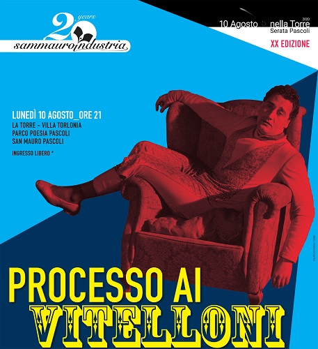 L’imputato è il “Vitellone”, omaggio al centenario di Federico Fellini. A guidare l’accusa è la giornalista de Il Manifesto Daniela Preziosi, la difesa da Gianfranco Angelucci stretto collaboratore del celebre regista. Presidente del Tribunale Gianfranco Miro Gori, fondatore del Processo e direttore di Sammauroindustria. Lo scenario dell’evento è sempre la Torre di pascoliana memoria a San Mauro Pascoli, luogo dal forte carico simbolico: amministrata da Ruggero Pascoli, padre di Giovanni Pascoli, ucciso da ignoti proprio il 10 agosto del 1867.
