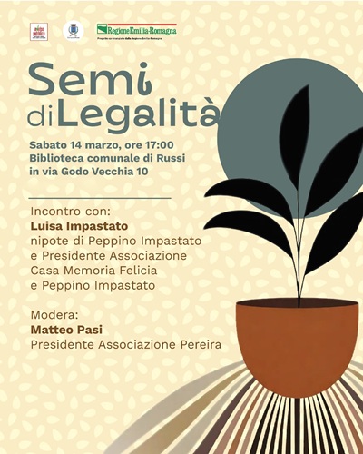 Durante la mattinata dello stesso giorno, Luisa Impastato incontrerà anche gli studenti delle classi terze della Scuola secondaria di primo grado «A. Baccarini» di Russi, a conclusione del percorso educativo sui temi della cittadinanza, della legalità e del contrasto ad ogni forma e mentalità mafiosa, promosso dal Comune di Russi per i più giovani e curato dall’Associazione Pereira.